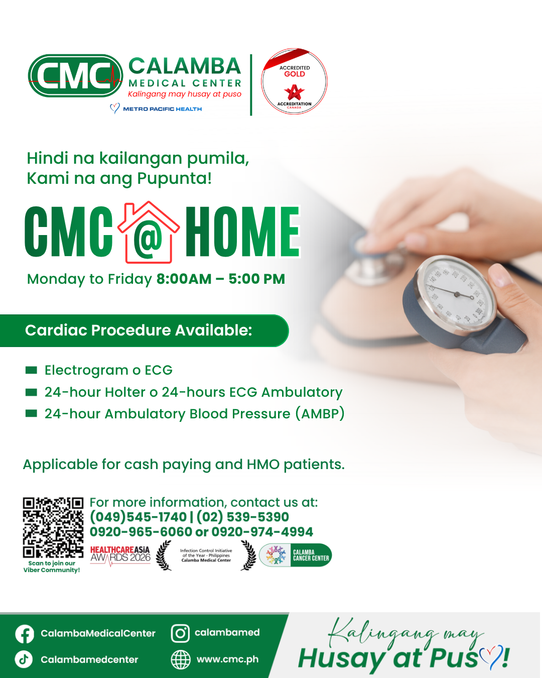 ECG, 24-hour Holter, at 24-hour AMBP — ligtas at maingat na isinasagawa sa CMC @ Home.